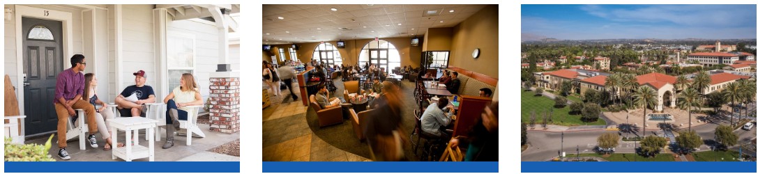 - Khuôn viên chính rộng ~162 mẫu nằm ở trung tâm Riverside với kiến trúc đẹp và hiện đại.